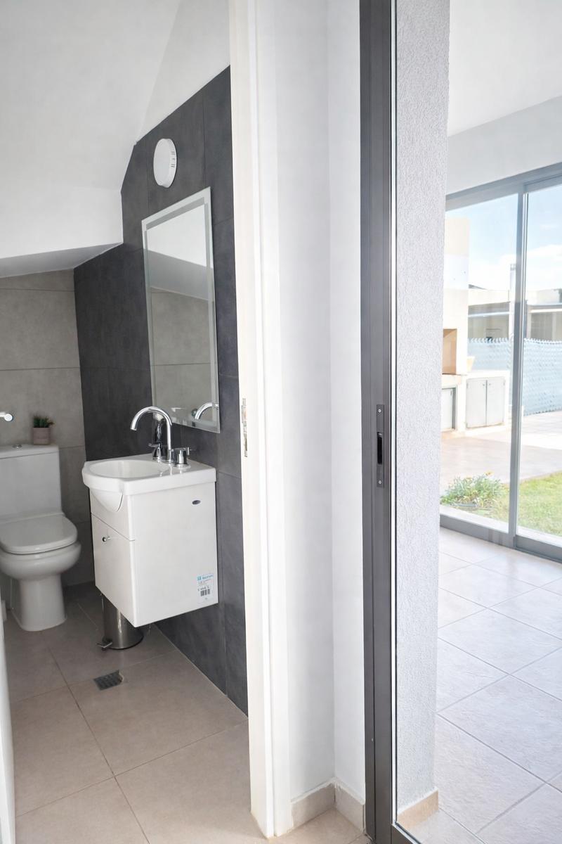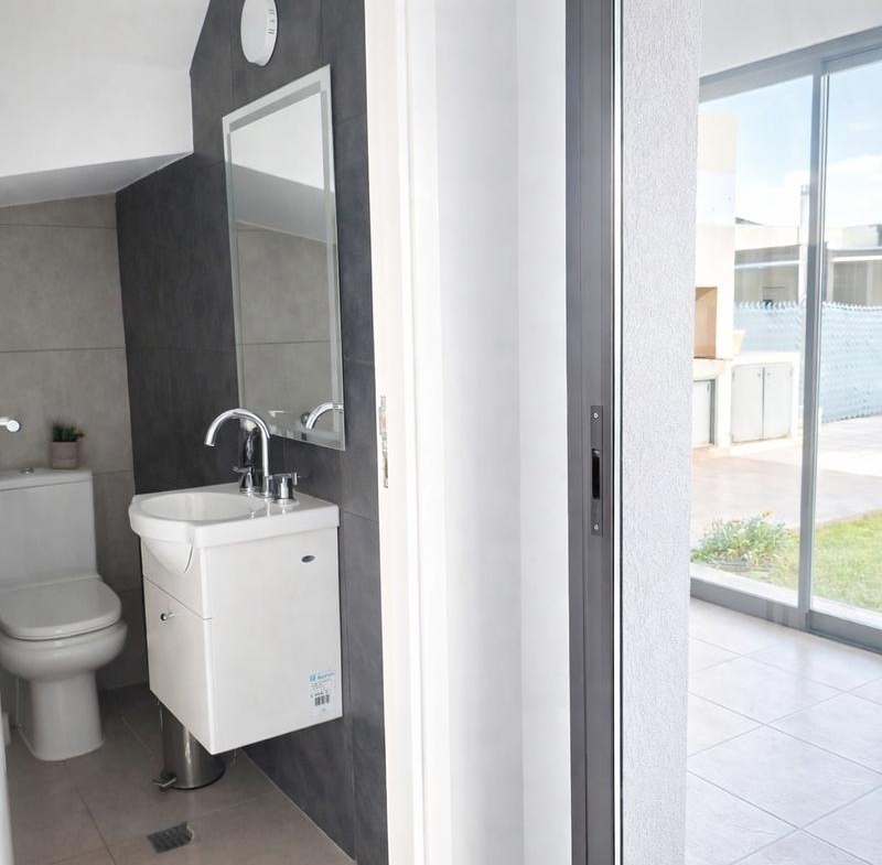 La galería techada y cerrada se integra armónicamente al interior, creando un espacio versátil que se proyecta hacia el jardín parquizado con piscina. El sector exterior se completa con churrasquera y cochera pasante para dos vehículos, pensado para vivir y disfrutar cada estación.