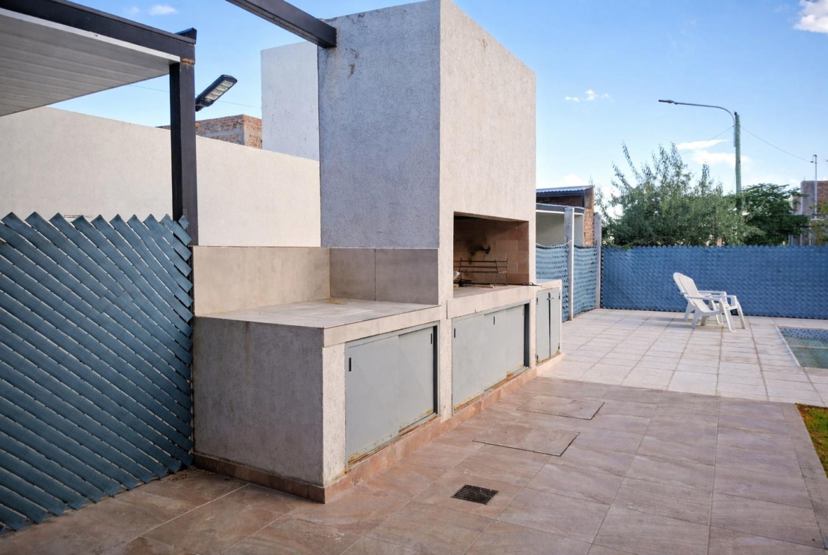 Con tan solo 4 años de antigüedad, esta propiedad se desarrolla sobre un terreno de 300 m² y ofrece 160 m² cubiertos distribuidos en dos plantas. Se destaca por sus detalles de calidad: pisos de porcelanato y aberturas con doble vidrio hermético (DVH), que garantizan excelente confort térmico y acústico durante todo el año.