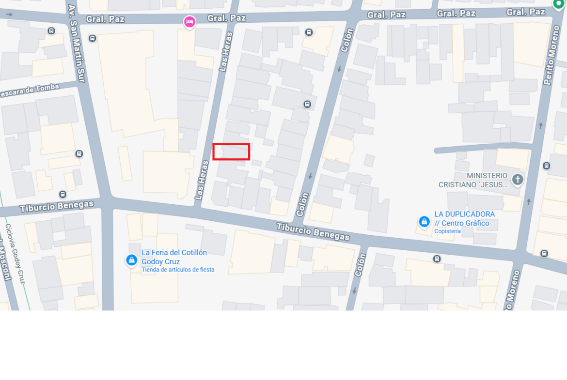 Es de importancia destacar la ESTRATEGICA UBICACION a 3 minutos de Palmares, 5 minutos de la plaza Godoy Cruz y a una cuadra de la Avenida San Martin Sur esquina Tiburcio Benegas con la comodidad de tener todo a tu alcance ( rubro gastronómico, locales comerciales de gran variedad).