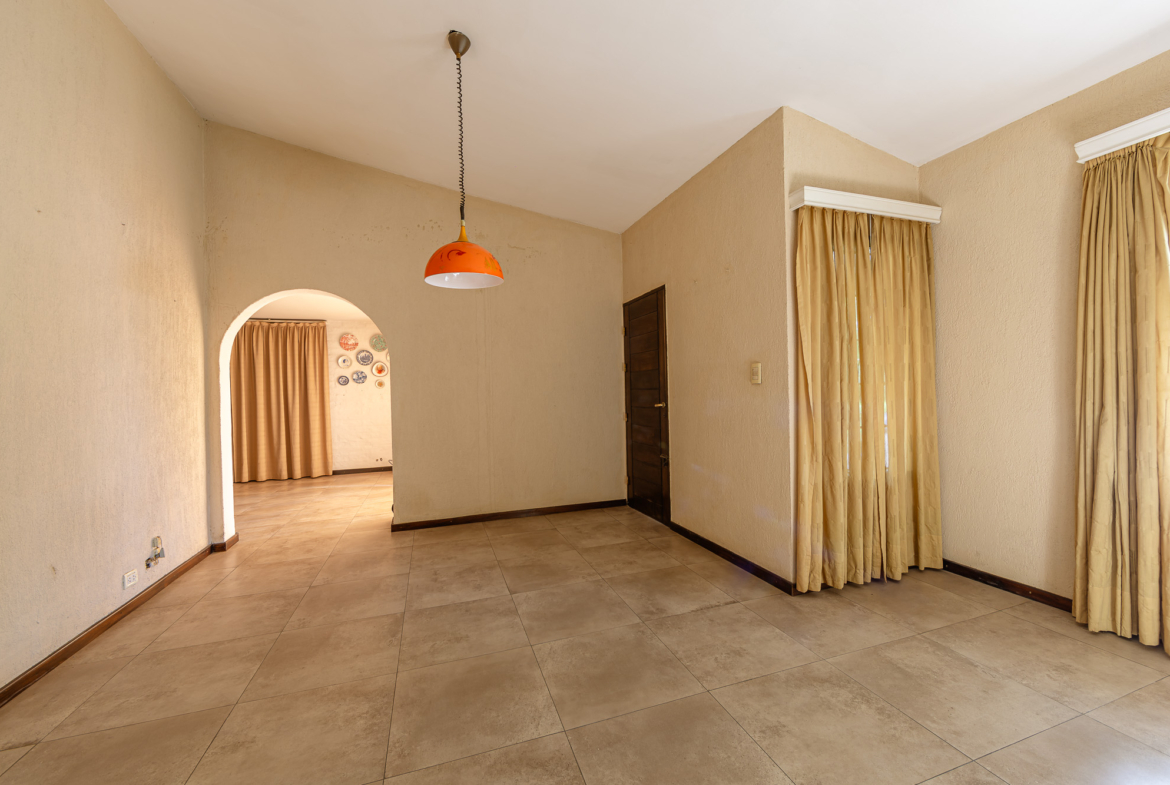 La propiedad se desarrolla en una sola planta y presenta un diseño cómodo y funcional. Dispone de amplio living con chimenea, comedor formal, cocina moderna y espaciosa con amoblamientos de calidad, comedor de diario con salida al jardín, churrasquera y obrador. Posee cuatro dormitorios con placares y bauleras, y dos baños totalmente reciclados.